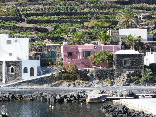La pietra lavica si ritrova anche nei muretti a secco che circondano i terreni e svelano l’anima contadina degli abitanti. Nei terrazzamenti, sospesi fra mare e cielo, si coltivano da secoli i capperi e la dolce uva zibibbo, cioè uva Malaga i cui acini sono fatti essiccare al sole, dalla cui vinificazione si ricava il Passito, un moscato dolce conosciuto in tutto il mondo.